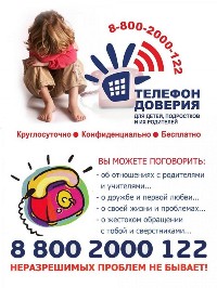 – Единый Детский телефон доверия: 8 800 2000 122;